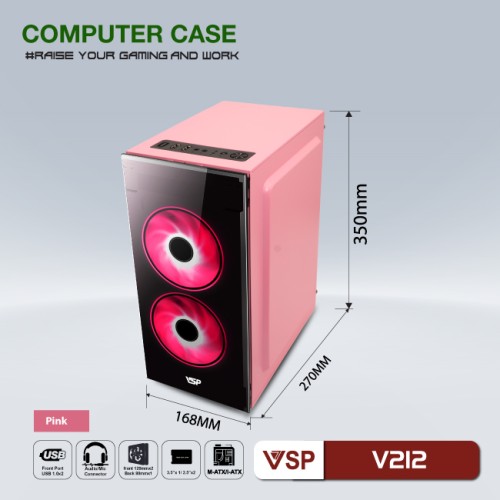 - Case VSP V212 Hồng (Chuẩn mATX)